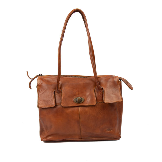 rabat ornemental; le sac s’ouvre via une poche zippée en haut. Le rabat est coincé.